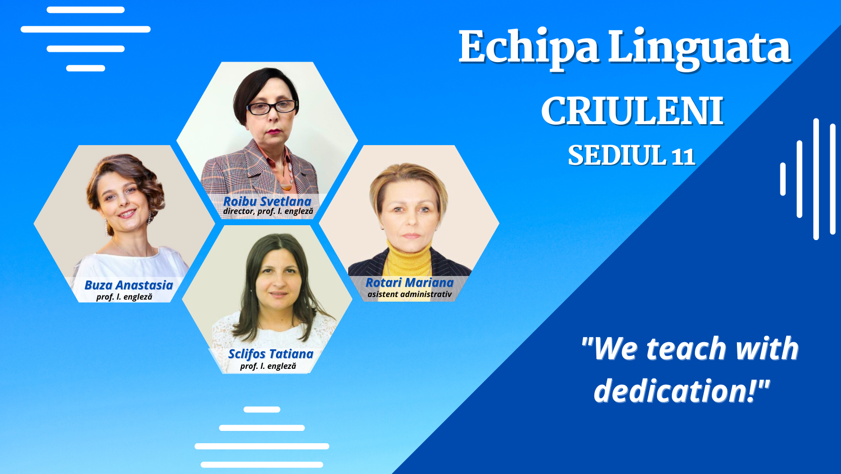 Succesul şi reuşitele reţelei de Şcoli de Limbi Străine LINGUATA se datorează în mare parte profesorilor noştri, care, datorită experienţei, devotamentului şi profesionalismului, oferă cursanţilor lecţii interactive de calitate.